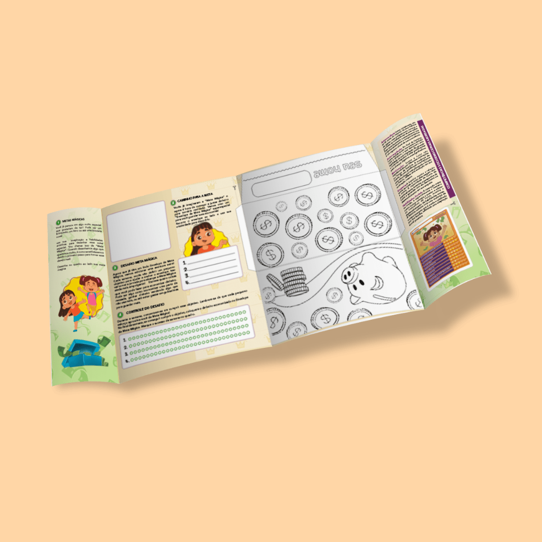 Com a compra de "Luana Gasta Grana e Luiza Economiza", as crianças recebem uma guarda de atividades com a proposta de elas montarem seu envelope mágico, e um guia básico de finanças ilustrado, projetado para ajudá-las a começar seu próprio fundo de poupança. Este kit estimula a prática de economizar de uma maneira que é tanto educativa quanto divertida.